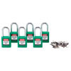 • Los candados tienen un cuerpo ligero no conductor de nylon reforzado con fibra de vidrio, tienen arco de acero reforzado y cilindros de 6 pernos resistentes a alteraciones.