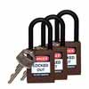 Los candados de nylon Brady® tienen un cuerpo no conductor de nylon reforzado con fibra de vidrio y cilindros de llave única que impide que la electricidad viaje del arco a la llave.