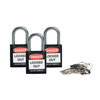 Los candados de nylon Brady® tienen un cuerpo no conductor de nylon reforzado con fibra de vidrio y cilindros de llave única que impide que la electricidad viaje del arco a la llave.