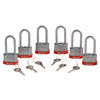 Los candados de acero laminado de llaves iguales con arco de acero templado con espacio de 2" de Brady® resisten el abuso físico severo.