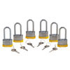 • Todos los candados de este set pueden abrirse con la misma llave. Esta opción es útil cuando se asignan múltiples candados a un solo empleado.