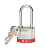 Los candados de acero laminado con arco de acero templado con espacio de 2" de Brady® resisten el abuso físico severo y ofrecen resistencia superior a la corrosión.