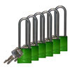 • Todos los candados de este set pueden abrirse con la misma llave. Esta opción es útil cuando se asignan múltiples candados a un solo empleado.